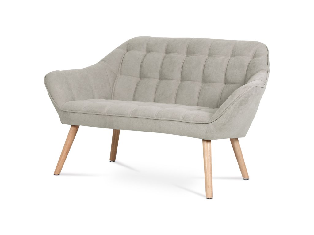 Dvoumístná sedačka v skandinávském stylu s kubistickými prvky. Charakteristickými prvky této dvojsedačky je výrazné čtvercové prošití sedáku i opěráku, masivní sedací korpus s ostrými liniemi v kontrastu s vysokými štíhlými nohami. Sedačka je celočalouněná, včetně zad. Lze ji použít jak k přisazení ke stěně, tak i ve středu místnosti. Může sloužit jako výrazný solitér, nebo s křesly jako sedací souprava. Své uplatnění najde v chodbě, hale, obývacím pokoji i ložnici. Potah je z látky v trendy stříbrnobéžovém odstínu, kostra z masivního dřeva, vyplněné je kvalitní PU pěnou. Sedáky jsou ještě zpevněny elastickými popruhy pro zvýšení komfortu pohodlí. Štíhlé kónické nohy jsou z masivního kaučukovníku v přírodním odstínu a lakované transparentním lakem. Poškození podlahových krytin je eliminováno plastovými kluzáky, u zadních nohou jsou rektifikovatelné (výškově nastavitelné). Světlá výška sedačky je 30 cm , výška područek je 59 cm a šíře 10 cm. Nosnost je 150 kg. Pohodlí a vnitřní prostornost této sedačky ocení jistě každý. A pokud si ještě opřete ruce o zvýšené područky a nebo si lehnete, budete dlouho otálet, než sedačku opustíte. Sedačka se typově hodí ke křeslu AK-321.Doplňkové parametry
