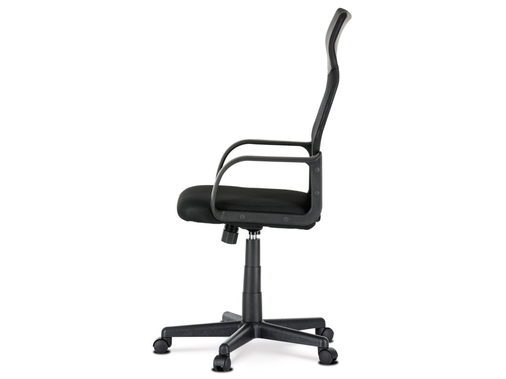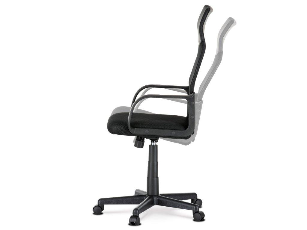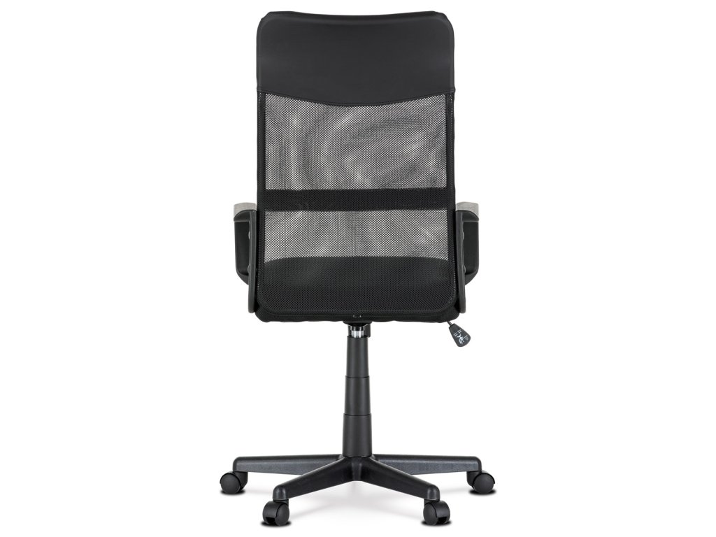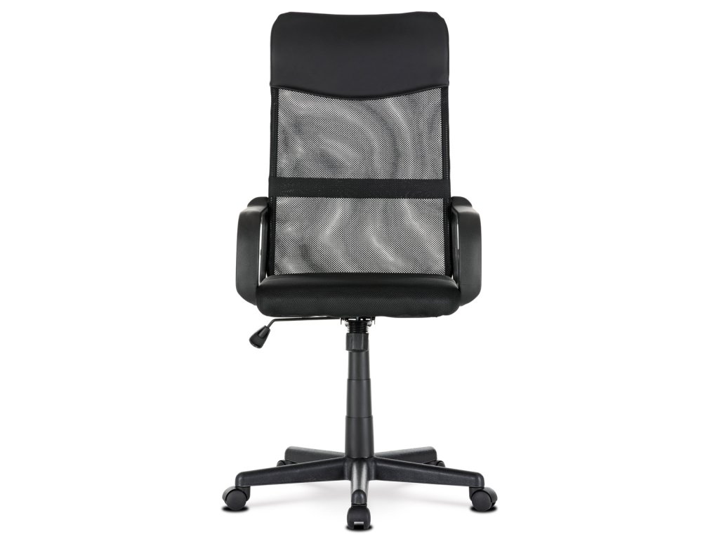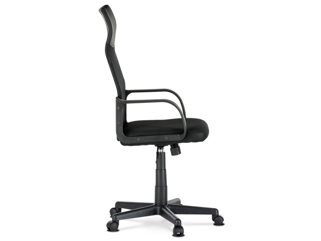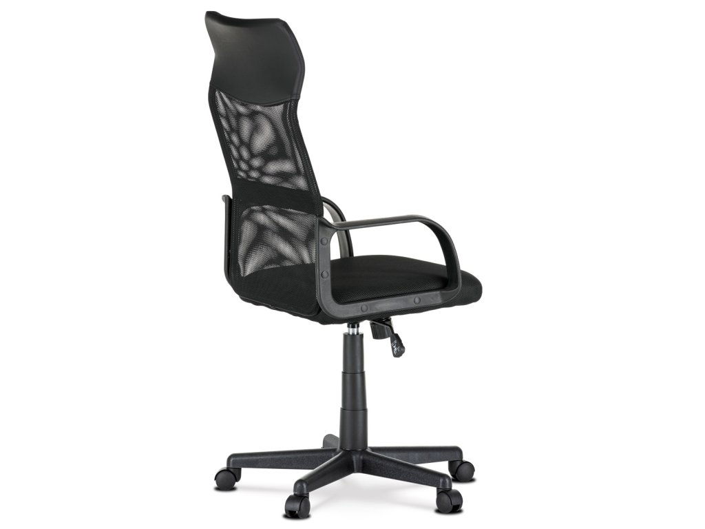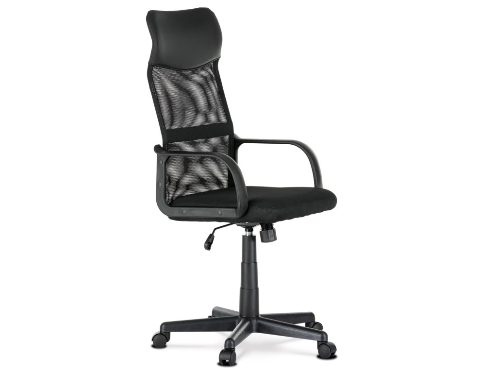 Oblíbená a nadčasová kancelářská židle decentní černé barvy je vhodná nejen do kanceláří, ale například i pro Home office. Vysoký trubkový opěrák s bederní opěrkou je potažen černou síťovinou MESH a v horní části jako podhlavník slouží velmi praktický potah z černé ekokůže. Použité materiály na sedáku i zádové části opěráku zaručují dokonalou prodyšnost. Příjemný polstrovaný sedák je potažený černou látkou MESH. Výplň je v kvalitní PU pěny, která zaručuje příjemné dlouhodobé sezení. Ruce si můžete pohodlně opřít o 6 cm široké černé plastové područky s velkou ložnou plochou 35 cm. Područky zároveň slouží jako velmi pevné spojovací díly sedáku s opěrákem. Díky kvalitnímu plynovému pístu je židle výškově nastavitelná, vybavená houpacím mechanismem a velkým aretačním šroubem na úpravu tuhosti pohupu, který je umístěn pod sedákem. Správnou stabilitu a pevnost zajišťuje pětiramenný černý plastový kříž o pr. 60 cm s plastovými kolečky vhodnými na koberce.