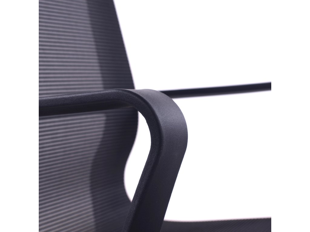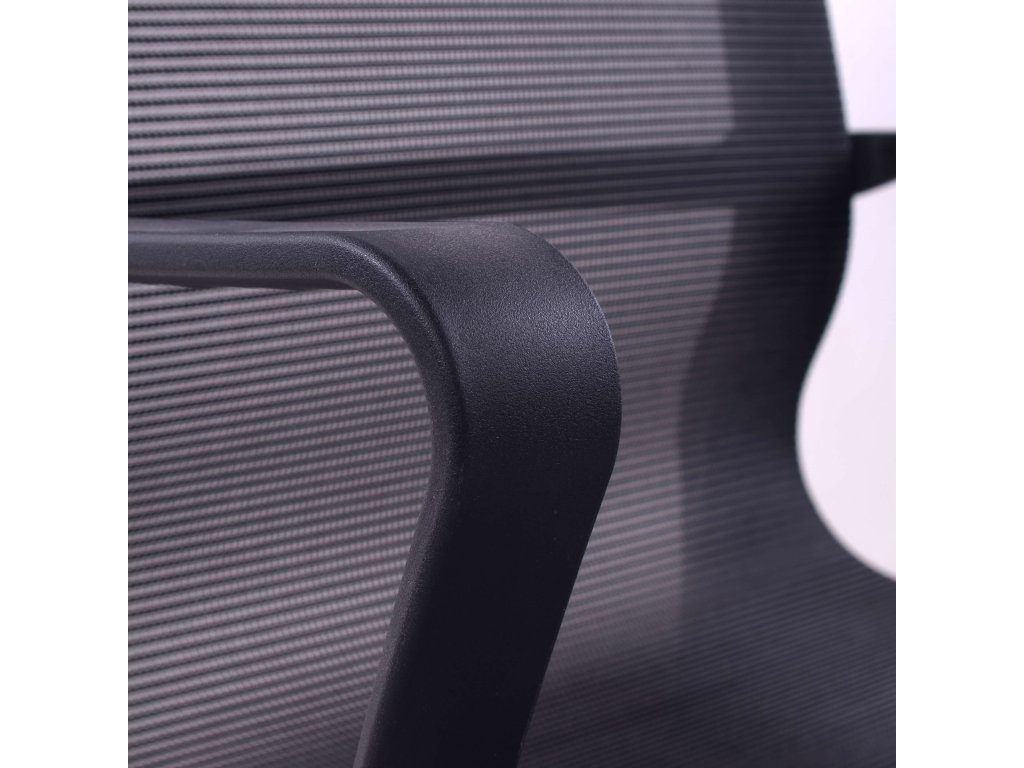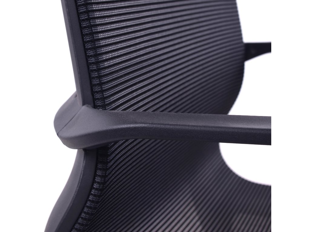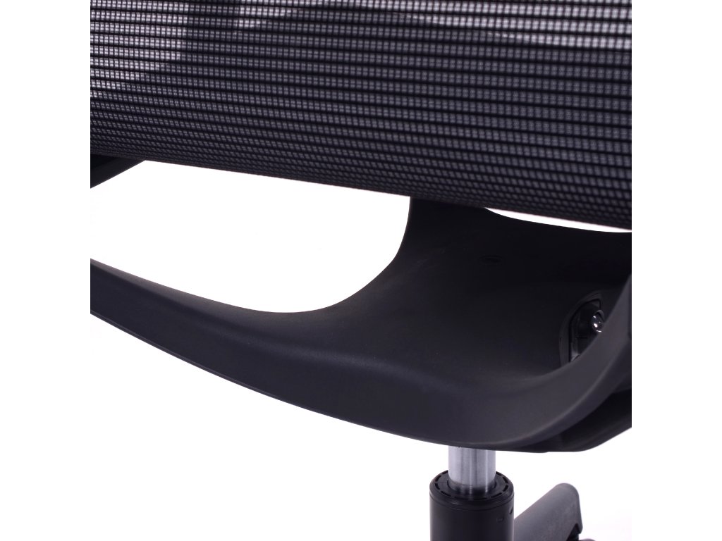 Středně vysoký ergonomicky tvarovaný opěrák , korpus z tvrzeného plastu s prodyšnou kvalitní síťovinou, pevné područky, mechanismus s možností nastavení tuhosti odporu houpání, nylonový kříž, univerzální kolečka Ø 60mm, barevné provedení: černá, váha židle 10, 2 kg