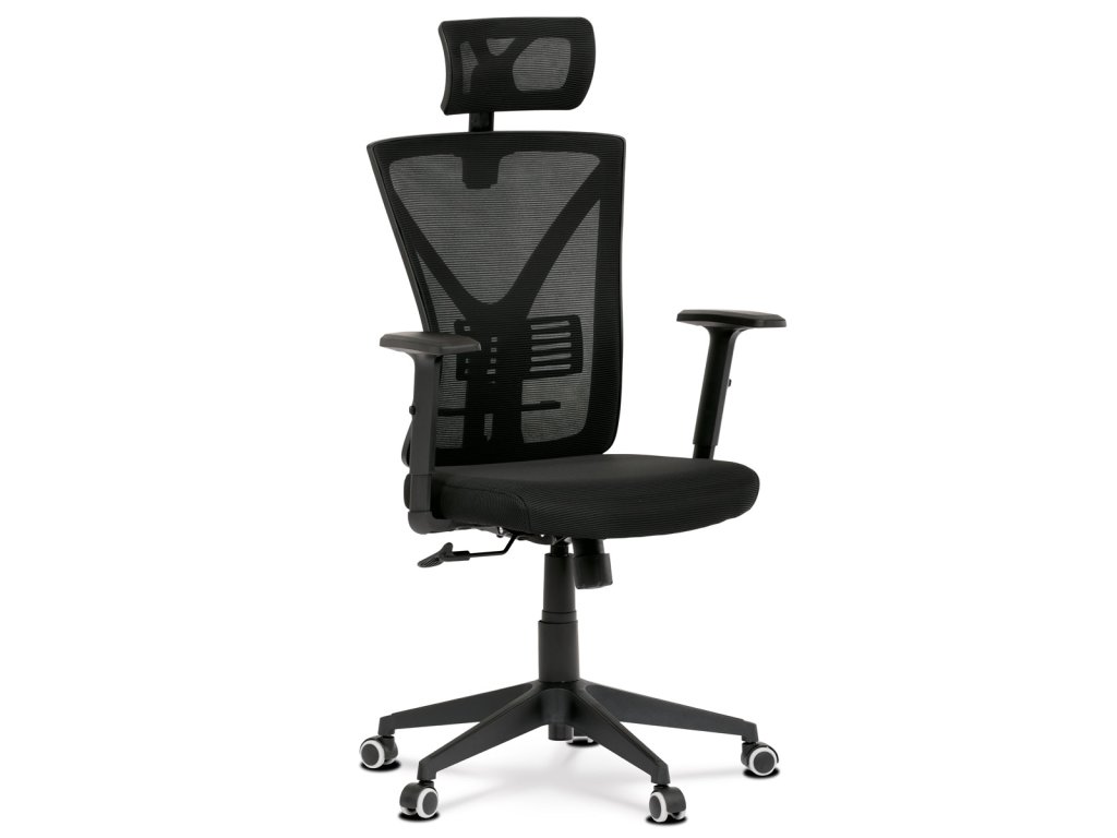 Kancelářská židle v černé látce. Výškově stavitelné područky. Kostra, područky a kříž je vyroben z odolného plastu. Kolečka pro tvrdé povrchy.Doplňkové parametry